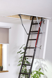 Металлическая теплоизоляционная лестница Fakro LME 70x130/305 с поручнем не только гарантирует надёжный и удобный доступ на чердак, но и вносит вклад в теплоэффективность здания. Благодаря облегчённой крышке люка, выполненной из пенополистирола, эта конструкция обеспечивает отличную изоляцию от холода и шума. К тому же, специальные противоскользящие прорези на ступеньках увеличивают безопасность использования, предотвращая скольжение и падение при подъёме. Устойчивость лестницы повышается за счёт наконечников на ножках, которые предохраняют пол от возможных повреждений и способствуют более точной настройке высоты лестницы согласно требованиям помещения.