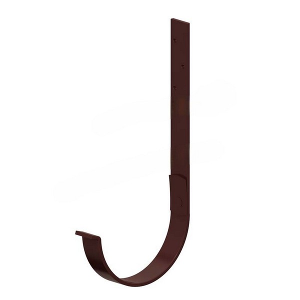Держатель желоба размером 125х280 миллиметров Металл Профиль GS Lite с полимерным покрытием цвета RAL 8017 удерживает желоб на весу. Увеличенная длина кронштейна позволяет установить его в недоступных местах крыши. Этот элемент водостока можно крепить прямо к стропильным ногам, если нет возможности монтировать на лобовую доску.
