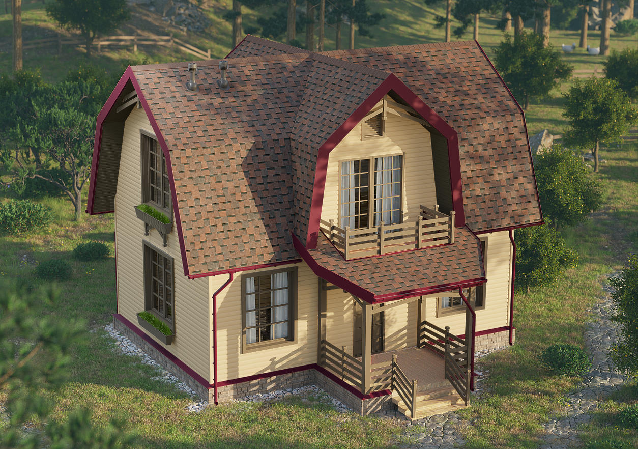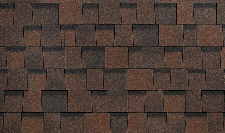Характерная форма нарезки гибкой черепицы Дёке Пай Dragon Standard Тёмно-коричневый — «драконий зуб» — формирует на поверхности кровли чёткий геометрический рисунок с эффектом объёма и глубины. В данном оттенке этот рисунок создаёт спокойный и уравновешенный визуальный образ, гармонирующий с классическими фасадными решениями и природными материалами.