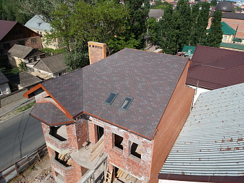 Гибкая черепица Дёке Пай Premium Цюрих Мокко имеет индивидуальную форму нарезки — сланец (четырёхлепестковую), которая обеспечит плотную укладку и эстетичный внешний вид кровли необходимого архитектурного стиля.