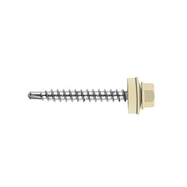 Кровельный саморез по дереву Daxmer 4,8x35 RAL 9001 (250) сверло №1 предназначен для герметичной сборки кровли из тонколистовых материалов методом притягивания к деревянному основанию. Внешне напоминает шуруп с мощной резьбой из углеродистой стали с усиленным стержнем диаметром 4,8 миллиметра и длиной 35 миллиметров. С одного края он имеет сверло для упрощения закручивания в кровельный материал, а с другой – шестигранную шляпку под ключ 8 миллиметра. Кровельный саморез по дереву Даксмер имеет антикоррозионное окрашенное покрытие и прокладку из epdm-резины, которая после сжатия вулканизируется и обеспечивает герметичное соединение.