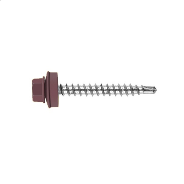 Кровельный саморез по дереву Daxmer 4,8x70 RR 750 (100) сверло №1 представляет собой стержень диаметром 4,8 миллиметра с наконечником в виде сверла. Острое сверло №1 с правильной геометрией легко просверливает различные материалы. Метиз увеличенного формата нужен для надежного крепления на древесные основания железных кровельных покрытий толщиной до 2,3 миллиметра. Это могут быть профилированные листы, стальная черепица или плоский лист. Длина кровельного самореза - 70 миллиметров. Шляпка выполнена в виде болта с шайбой с шестигранной формой. Притягивание обеспечивается торцевой головкой или битой размером 8 миллиметров. Антикоррозионный эффект обеспечивается слоем цинка и покраской крепежного элемента в цвет RAL, RR. Комплектная прокладка из эпдм-резины гарантирует герметичность в месте крепежа.