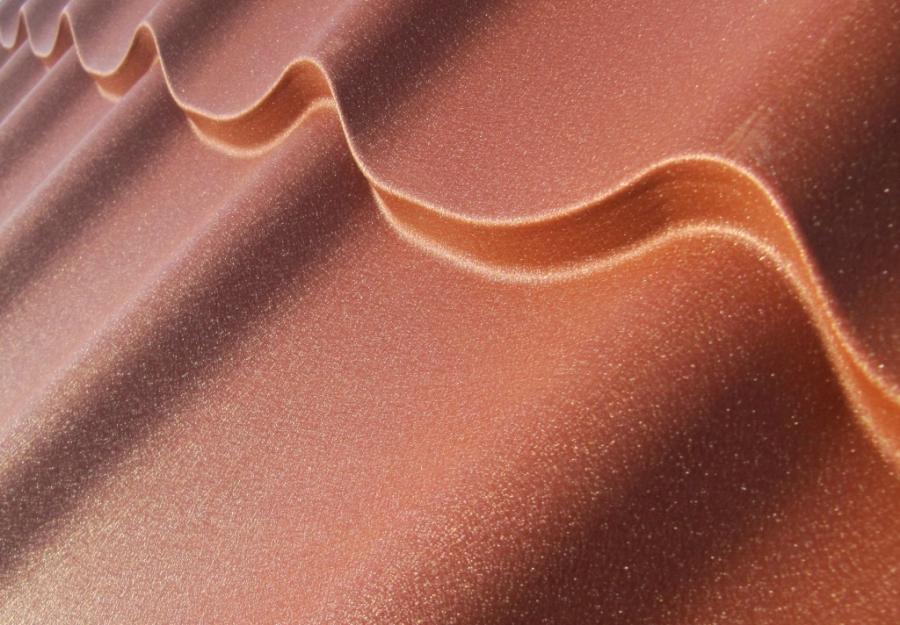 Металлический лист изготавливается из рулонной стали. Дополнительно его покрывают полимерным покрытием с матовой степенью блеска. Поливинилхлорид делает оттенок насыщенным и глубоким. Сталь пропускается через профилегибочный станок методом холодного проката. Для получения фактурной красивой металло черепицы берут тонкую сталь толщиной от 0,4 до 0,5 миллиметров.