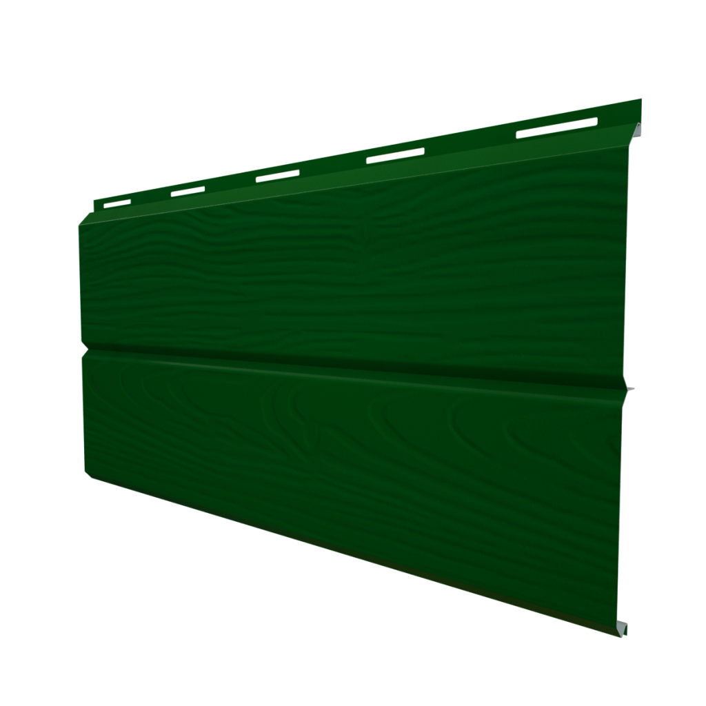 Металлический сайдинг Grand Line ЭкоБрус 3D RAL 6005 с покрытием Drap обладает объёмной фактурой дерева и применяется для облицовки фасада. В сочетании с декоративным покрытием смотрится на доме как клееный брус, а благодаря реалистичной структуре древесных волокон создаётся эффект 3D. Стальной сайдинг отличается высокой устойчивостью к воздействию ультрафиолетового излучения и сменам температурного режима.
