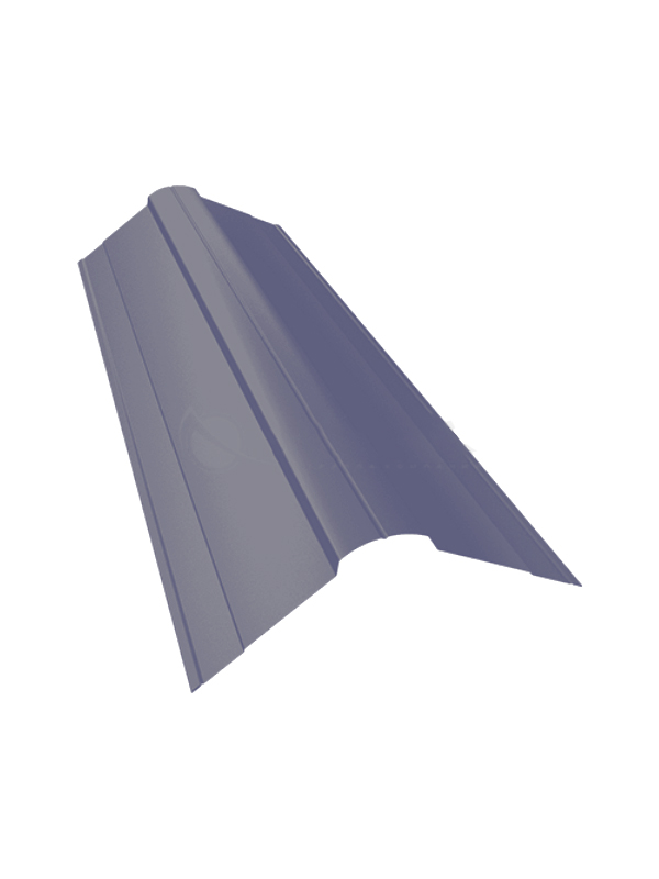 Планка фигурного конька 70x70 Grand Line с покрытием Полиэстер 0,45 мм RAL 5002 отделочный кровельный элемент, используемый в жарких и умеренных климатических зонах, а также на крышах с большим углом возвышения. Монтаж проводится на место схода двух скатов (непосредственно на гребень) с перекрытием кровли по сторонам на 70 миллиметра, причем добор может быть использован на кровлях с мягким плоским покрытием и сохраняет возможность создания вентиляции. Доборная планка органично декорирует конек и защищает подкровельное пространство от проникновения внутрь влаги и разрушающего ветра. Планка фигурного конька профилируется из тонколистовой стали с защитным покрытием со сложным форматом: несколькими плоскостными переходами, большими радиусами, краевыми прокатами фальцев.