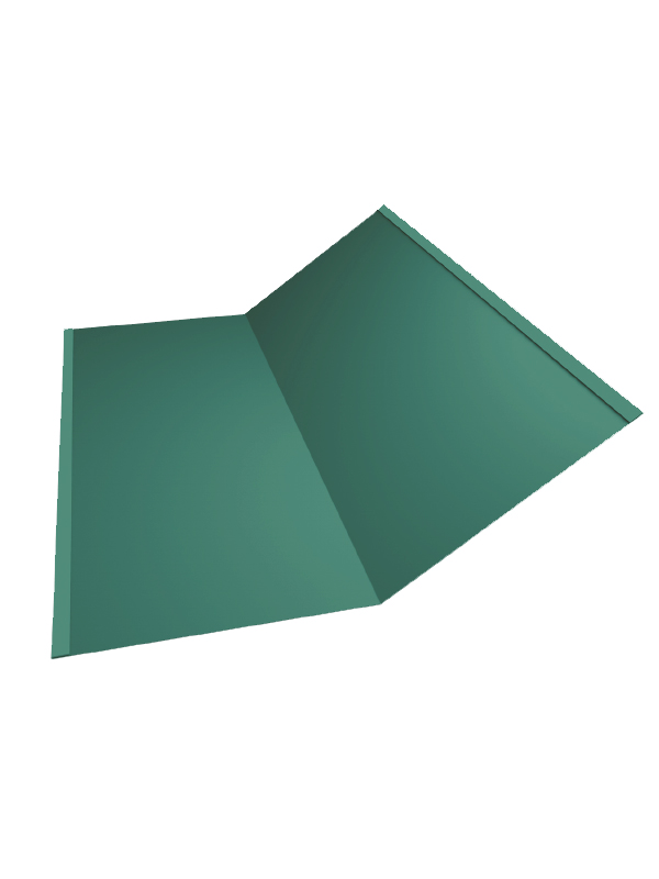 Планка нижней ендовы 300x300 Grand Line с покрытием Полиэстер 0,7 мм RAL 6005 - доборный элемент необходимый для надежной герметизации мест стыковки с отрицательными углами скатных металлических кровель. Укладывается непосредственно в разжелобке под кровельные листы, что обеспечивает надежный направленный сход обильных атмосферных осадков без проникновения внутрь кровли. Планка ендовы имеет простой угловой по форме загиб со сторонами 300 миллиметра и дополнительные загибы по краям в 12 миллиметра. Добор изготавливается из тонколистового металла с мощным оцинкованием и стойким полимерным покрытием в цвет.