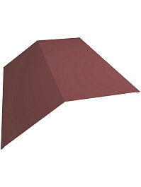 Планка плоского конька 115x30x115 Grand Line с покрытием Полиэстер 0,45 мм RAL 3011 доборная планка обязательная для установки на скатной кровле, причем из-за уменьшенных габаритов до кровельного перекрытия в 115 миллиметра применима на крышах с большим углом возвышения, а также в жарких климатических зонах. Пропускная вентиляционная способность значительно снижена, но сохраняется за счет небольшого сформированного центрального канала шириной 30 миллиметра. Добор элегантно декорирует гребень крыши, где и монтируется, а также защищает подкровельное пространства от прямого воздействия осадков. Планка плоского конька сформирована в виде развернутого угла из тонколистового кровельного металла с многослойным декоративно-защитным покрытием в цвет.