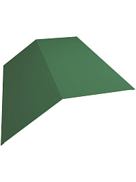Планка плоского конька 115x30x115 Grand Line с покрытием Полиэстер 0,45 мм RAL 6002 доборная планка обязательная для установки на скатной кровле, причем из-за уменьшенных габаритов до кровельного перекрытия в 115 миллиметра применима на крышах с большим углом возвышения, а также в жарких климатических зонах. Пропускная вентиляционная способность значительно снижена, но сохраняется за счет небольшого сформированного центрального канала шириной 30 миллиметра. Добор элегантно декорирует гребень крыши, где и монтируется, а также защищает подкровельное пространства от прямого воздействия осадков. Планка плоского конька сформирована в виде развернутого угла из тонколистового кровельного металла с многослойным декоративно-защитным покрытием в цвет.