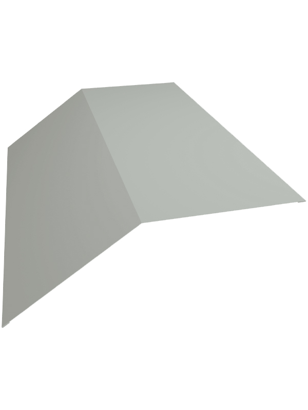 Планка плоского конька 115x30x115 Grand Line с покрытием Полиэстер 0,45 мм RAL 9003 доборная планка обязательная для установки на скатной кровле, причем из-за уменьшенных габаритов до кровельного перекрытия в 115 миллиметра применима на крышах с большим углом возвышения, а также в жарких климатических зонах. Пропускная вентиляционная способность значительно снижена, но сохраняется за счет небольшого сформированного центрального канала шириной 30 миллиметра. Добор элегантно декорирует гребень крыши, где и монтируется, а также защищает подкровельное пространства от прямого воздействия осадков. Планка плоского конька сформирована в виде развернутого угла из тонколистового кровельного металла с многослойным декоративно-защитным покрытием в цвет.