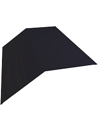 Планка плоского конька 115x30x115 Grand Line с покрытием Полиэстер 0,45 мм RAL 9005 доборная планка обязательная для установки на скатной кровле, причем из-за уменьшенных габаритов до кровельного перекрытия в 115 миллиметра применима на крышах с большим углом возвышения, а также в жарких климатических зонах. Пропускная вентиляционная способность значительно снижена, но сохраняется за счет небольшого сформированного центрального канала шириной 30 миллиметра. Добор элегантно декорирует гребень крыши, где и монтируется, а также защищает подкровельное пространства от прямого воздействия осадков. Планка плоского конька сформирована в виде развернутого угла из тонколистового кровельного металла с многослойным декоративно-защитным покрытием в цвет.