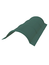 Планка полукруглого конька Grand Line с покрытием PurLite Matt 0,5 мм RAL 6005 обязательный специализированный добор металлической многоскатной кровли, устанавливаемый непосредственно на гребневое схождение скатов. Доборный элемент органично декорирует и надежно защищает от разрушающего воздействия природных проявлений скатный пик. Планка полукруглого конька имеет сложносформированную форму в виде полукруглого загиба с ответвлениями для крепления, причем для усиления жесткости добора выполнены с шагом дополнительные штампы каналов (усилителей). Планку конька изготавливают методом штамповки из кровельного стального материала с многослойной защитой стойкой к разрушающим воздействиям. Перспективно использовать планку в холодной и умеренной климатической зоне.