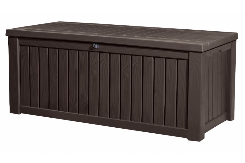 Сундук RockWood сочетает в себе шик деревянных панелей с прочной пластиковой конструкцией обеспечивая стиль, а также полную устойчивость к погодным условиям.