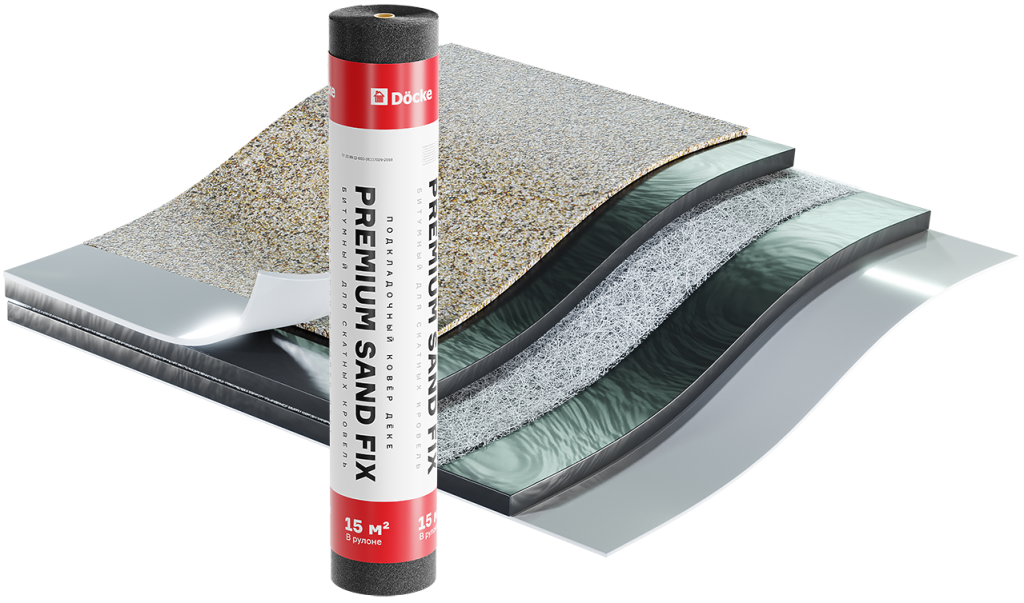 Подкладочный ковёр Docke Premium Sand Fix, 15 м² — это рулонный материал из битумной смеси СБС, армированный полиэстером, который служит надёжной основой для устройства кровельных систем. Конструкция ковра обеспечивает высокую прочность, эластичность и устойчивость к деформациям. Материал имеет защитный слой, как для верхней, так и нижней сторон: мелкозернистая посыпка (песок) и съёмная плёнка, соответственно.