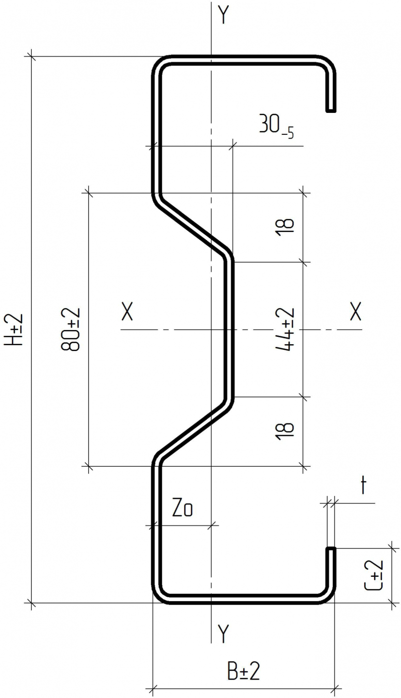 Профиль Σ-образный (Сигма) Σ(44)-180x50x1,5 — это высокопрочный элемент для возведения лёгких стальных тонкостенных конструкций и быстровозводимых зданий. Его используют при монтаже наружных и внутренних стен, перекрытий, стропильных систем и каркасов мансард. Благодаря своей геометрии с несколькими рёбрами жёсткости сигма-профиль сочетает малый вес с высокой несущей способностью, что позволяет ему выдерживать значительные вертикальные и продольные нагрузки. Изготавливается из оцинкованной стали марок 250-350 в соответствии с ГОСТ 14918-80 и ГОСТ Р 52246-2004.