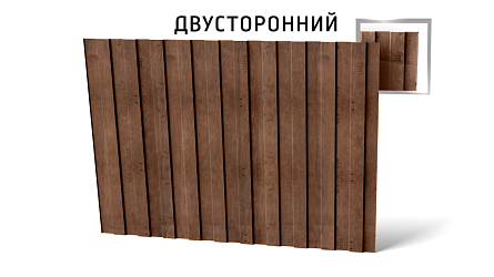 Матовый профнастил С8-1150 толщиной 0,5 мм с покрытием Print Antique dub является популярным строительным материалом у владельцев загородных участков. Из него возводят заборы, уличные туалеты, ведут монтаж облицовки фасадов частных домов. Рисунок на поверхности эффектно имитирует текстуру дерева, что достигается благодаря нанесению на профлист фирменных глянцевых покрытий Colority Print. В отличие от деревянной ограды, такая прослужит дольше и не требует обслуживания. К достоинствам профилированного металла относятся: