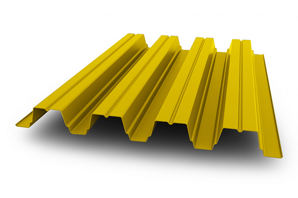 Профнастил Н75-750 с покрытием Полиэстер толщиной 0,9 миллиметра и цветом покрытия RAL 1018 является известным строительным материлом. Он относится к классу листовых, из которого делают кровлю, изготавливают каркасные металлоконструкции. Большая толщина профиля позволяет эксплуатировать железный лист в качестве кровли с шагом обрешетки до 4 метров. Функциональные свойства металлпрофиля марки Н75: