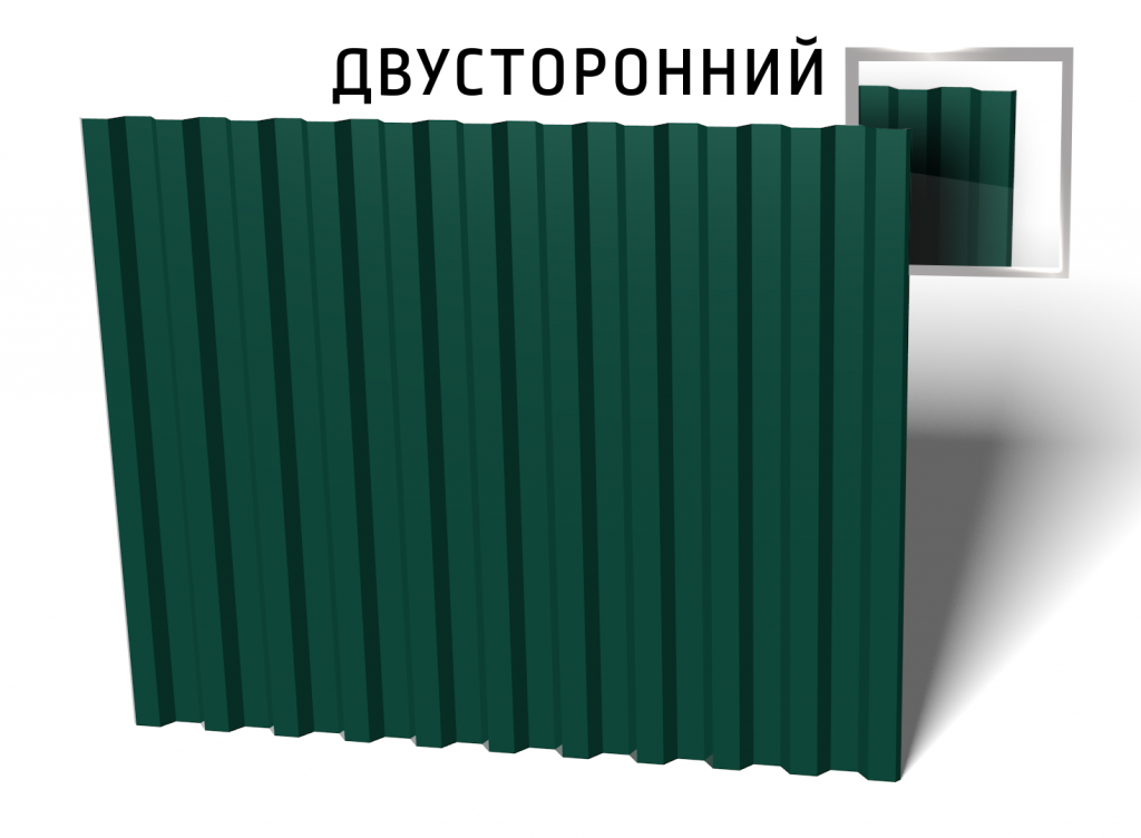 Профнастил С21 с двусторонним покрытием Полиэстер толщиной 0,45 миллиметра и цветом покрытия RAL 6005 это стеновой строительный материал. Чаще всего такой материал используется для возведения заборов и ограждений. Двустороннее покрытие делает лист эстетически привлекательным. Литера "С" указывает на то, что листовое железо способно выдерживать сильные вертикальные нагрузки. При плотной обрешетке профлист двадцать первой марки легко окажет сопротивление и горизонтальным нагрузкам. К преимуществам волнового железа относят: