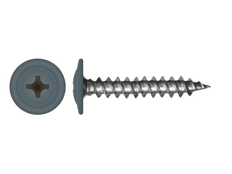 Саморез с прессшайбой по дереву 4,2x25 RAL 7016 (500 шт) представляет собой высококачественный крепеж увеличенного формата. Производится в виде шурупа длинной 25 миллиметров из углеродистой стали марки С1022 с помощью штамповки. Метиз обладает плоской головкой (пресс-шайба) с большой контактной площадкой и шлицом под крестовую отвертку и биту №2 (PH2). Предназначен для фиксации между собой и к деревянным, пластиковым основаниям различных листовых материалов, в том числе оцинкованных, окрашенных металлов с толщиной до 0,9 миллиметра. Антикоррозионная обработка проводится путем оцинкования, толщина слоя цинка составляет не менее 5 микрометров. Затем шляпка фасадного самореза окрашивается в один из оттенков по цветовой таблице RAL, RR.