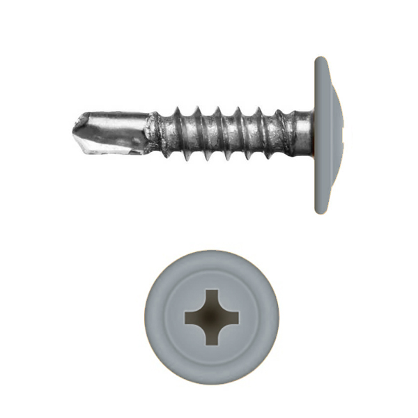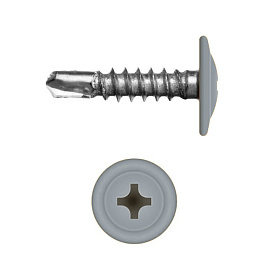 Саморез с прессшайбой по металлу 4,2x16 RAL 7001 (1000 шт) необходим для крепления различных материалов к металлическому основанию. Крепежный метиз высокого качества изготовлен методом точной штамповки из высокоуглеродистой стали с длиной стержня 16 миллиметров. На наконечнике сформировано специальное сверло (бур), который позволяет просверливать сталь толщиной до 2 миллиметров. Малоформатная резьба, плоская шляпка с большой площадью соприкосновения и крестообразный паз под отвертку или биту №2 (PH2) позволяют надежно закреплять материалы между собой. Саморезы выпускаются с слоем цинка в 3 микрометра, с последующей окраской шляпки в RAL-цвет.