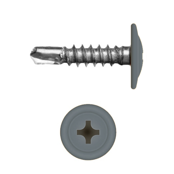 Саморез с прессшайбой по металлу 4,2x16 RAL 7011 (1000 шт) выполнен из высокоуглеродистой стали с рабочей длинной 16 миллиметров. Универсальный качественный крепеж служит для фиксации твердых материалов, в том числе металлов как между собой, так и к металлическому основанию. Наконечник шурупа выполнен в виде специального бура (сверла), поэтому без предварительной подготовки отверстия можно рабоатть с железом толщиной до 2 миллиметров. Катанная резьба с мелким шагом и плоская крупноформатная шляпка с крестообразным шлицом под отвертку и биту №2 (PH2) позволяет надежно притянуть материалы к металлическому основанию. Метизы оцинкованы слоем 3 микрометра, а шляпка самореза дополнительно окрашивается стойкими красками по каталогу RAL, RR.