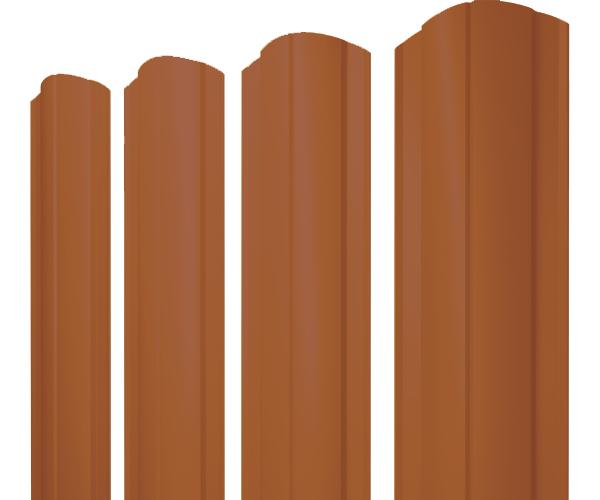 Штакетник Grand Line Круглый фигурный с покрытием Velur 0,5 мм RAL 8004 отличается привлекательным внешним видом, доступной стоимостью и долговечностью. Материал устанавливается для ограждений жилых территорий, промышленных, коммерческих и административных объектов. В отличие от профнастила, штакетник не нагревается и пропускает воздух, что позволяет создать благоприятные условия для роста растений. Материал с полимерным покрытием отличается стойкостью к коррозии и гниению. Фигурный круглый штакетник отличается легкостью монтажа и долговечностью. Материал используют для обустройства жилых и коммерческих территорий.