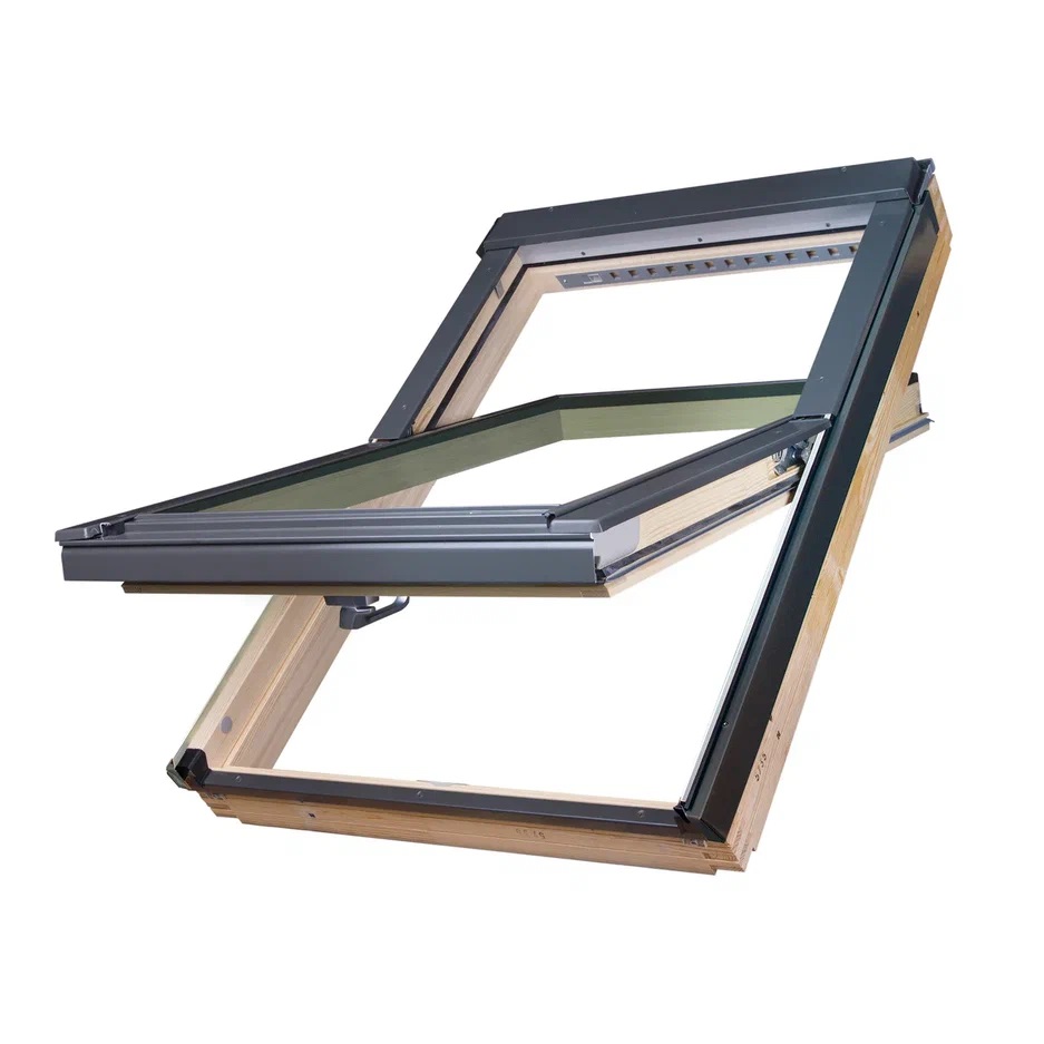 Мансардное окно от Fakro FTP-V U4 малого размера 55х78 см изготовленное на основе дерева с поворотом по центру рамы отличается от обычной серии специальным покрытием на внешней стороне стеклопакета. Это специальное легкоочищающееся покрытие, взаимодействующее с ультрафиолетовыми лучами, расщепляя органические загрязнения. А благодаря гидрофильному покрытию вода стекает по поверхности стекла не каплями, а ровным слоем, смывая загрязнения. Такое стекло быстро высыхает, а вода не оставляет разводов. На внутреннее стекло в стеклопакете нанесен низкоэмиссионный слой, который отражает тепловое излучение, тем самым уменьшая теплопотери. Специальные фрикционные петли позволяют проворачивать створку на 180° и фиксировать её в положении наклона. Со встроенным вентклапаном вы сможете проветривать помещение не открывая окна.
