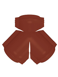 Тройник Y полукруглого конька Grand Line с покрытием Satin 0,5 мм RAL 3011 представляет собой сложноформатный доборный элемент специализированного назначения для многоскатных крыш. Монтаж тройника Y конька полукруглого выполняется непосредственно на пик схода трех гребней скатов для обеспечения герметизации стыковочного шва на полукруглых коньках. Изготавливается добор из специализированной кровельной тонколистовой стали, покрытой стойким декоративно-защитным сложнополимерным слоем, методом штамповки по сложной форме с одним крылом-накладкой укороченной и двумя накладками одинаковыми увеличенными.