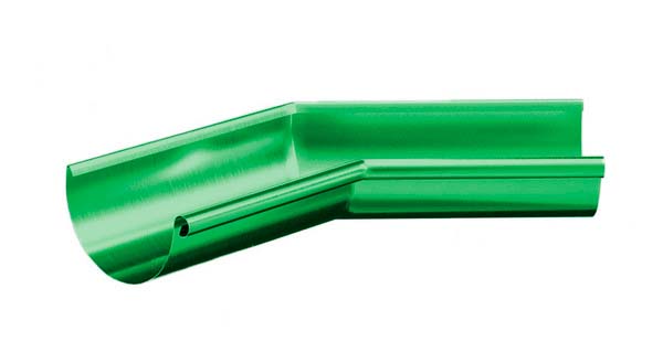Внутренний угол желоба 125 миллиметров Эконом 135 градусов с полимерным покрытием цвета RAL 6005 устанавливается на внутренние углы здания. Он предназначен для изменения тока воды в желобах. Элемент водостока создает непрерывность линий желоба по периметру дома. Угол легко и герметично соединяется с желобами, защищая фасад промышленных зданий, складских построек от влажности и увеличивая срок службы здания.