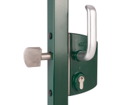 Этот замок в алюминиевом корпусе с механизмом из нержавеющей стали рекомендуется использовать для распашных промышленных ворот. В стандартную комплектацию входят алюминиевые ручки. Для монтажа на профиле шириной 60-80 мм.